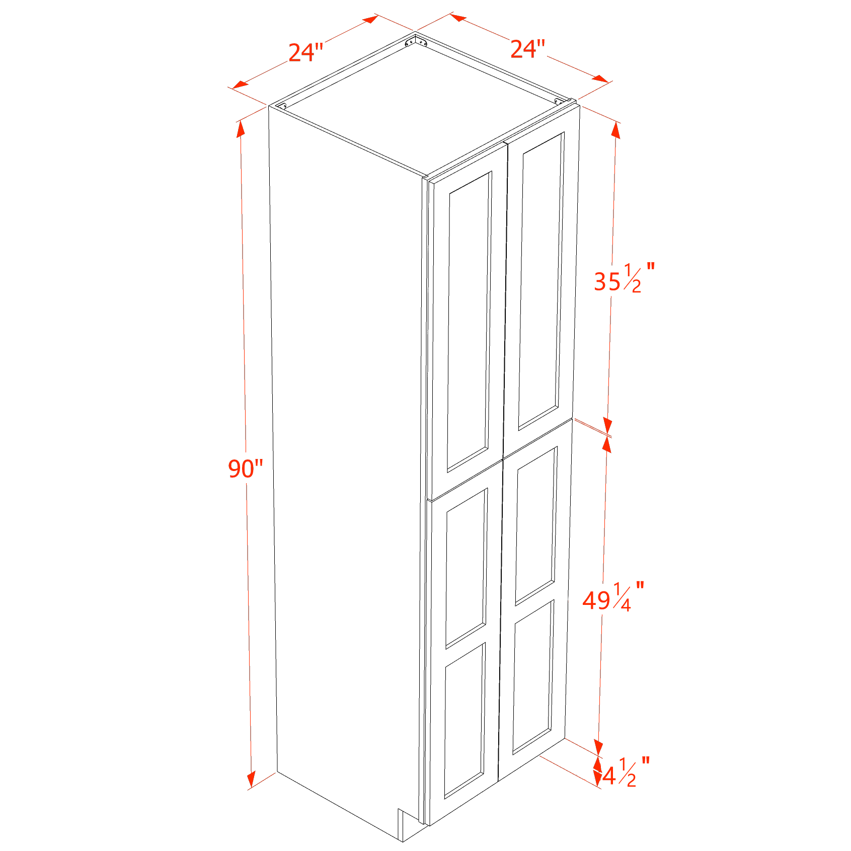 Ivory White - Tall - Shelf Pantry w/ 4 Door & 5 Shelf - 24"W x 90"H x 24"D Read more