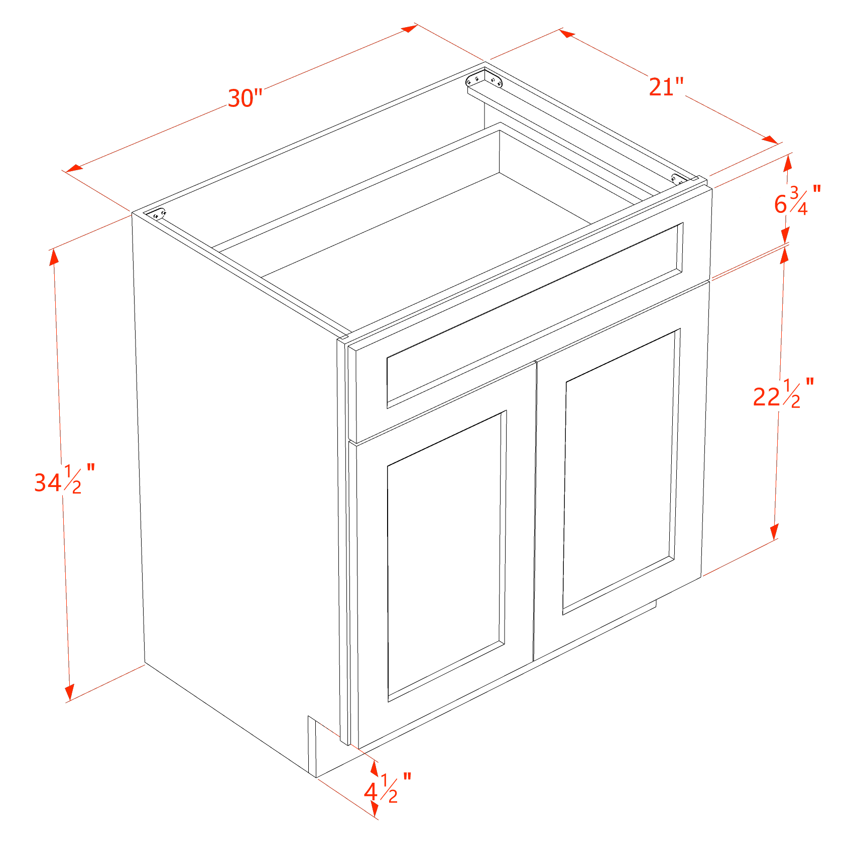 Ivory White - Vanity Base - 2 Door & 1 Drawer - 30"W x 34-1/2"H x 21"D