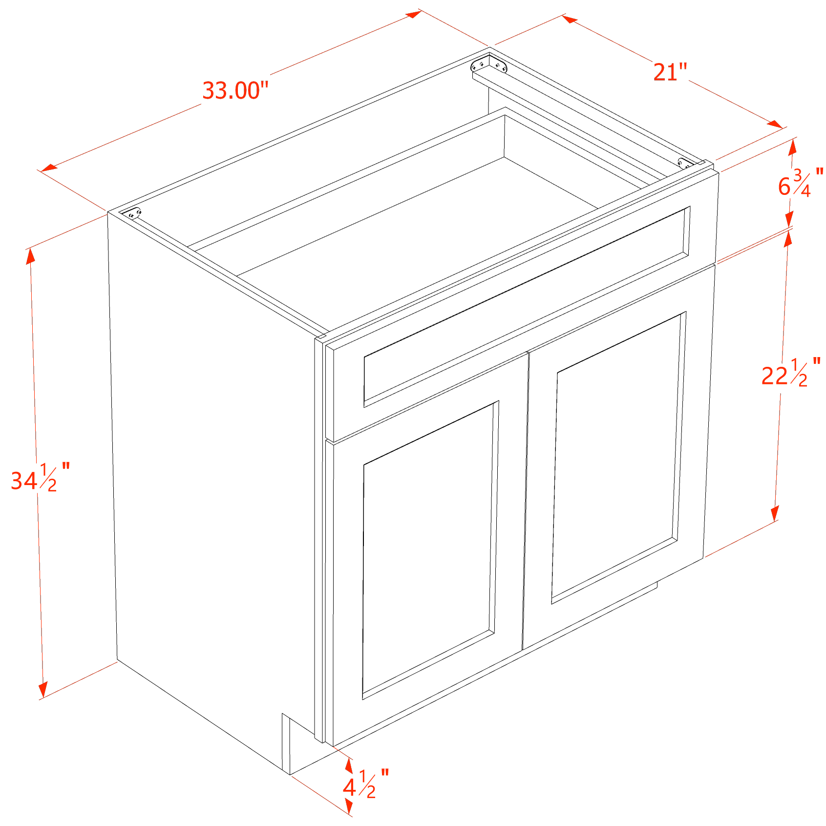 Ivory White - Vanity Base - 2 Door & 1 Drawer - 33"W x 34-1/2"H x 21"D