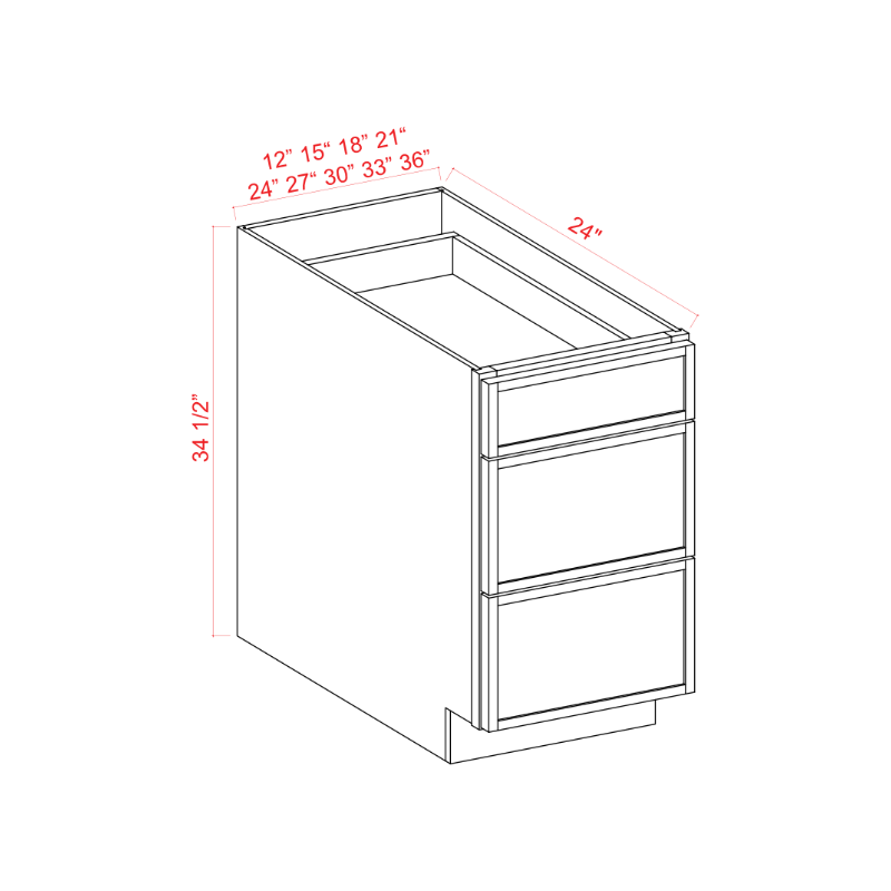 Slim Mocha - Drawer Base - 3 Drawer - 12"W x 34-1/2"H x 24"D