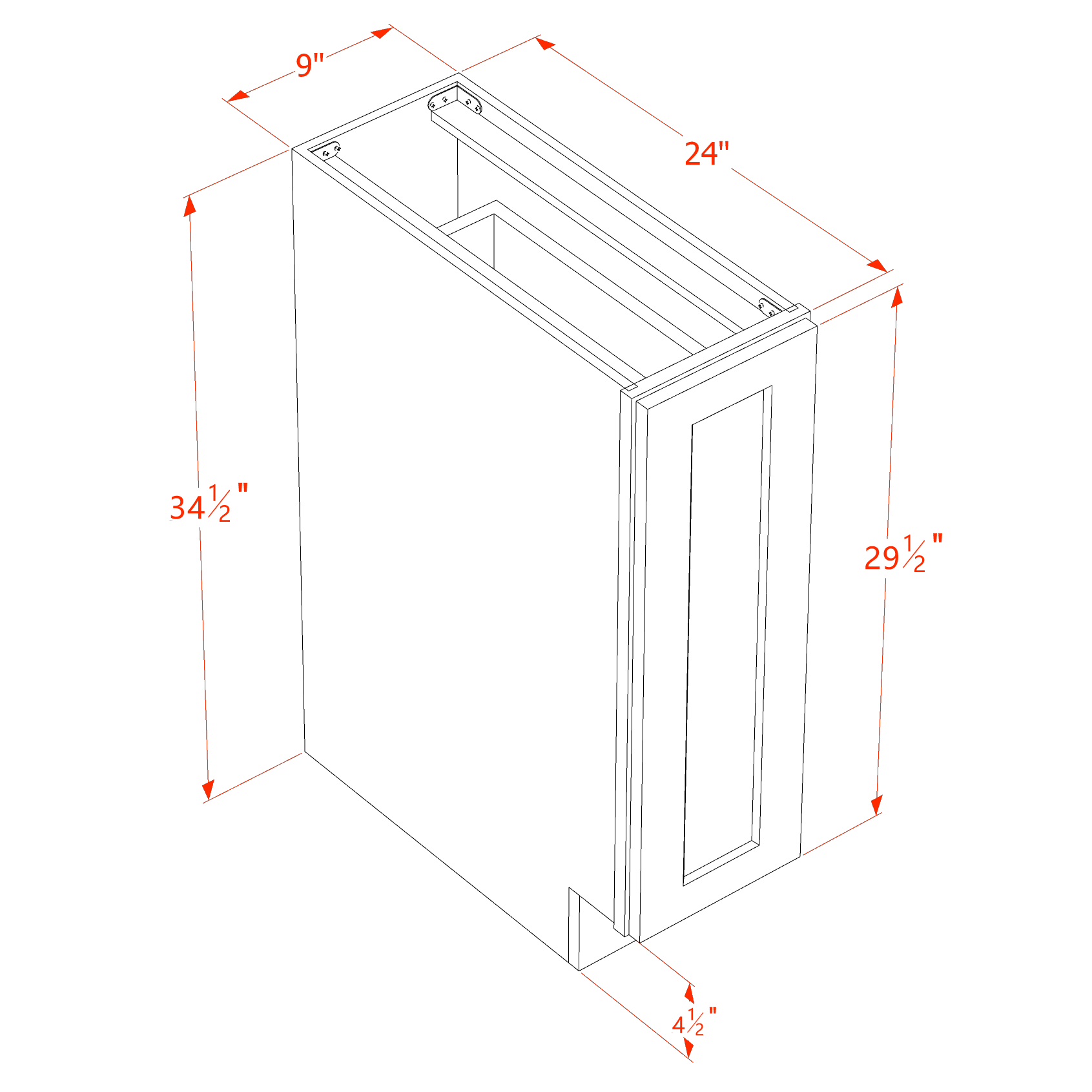 Trenton Swan White - Pull Out Base - Spice Rack w/ Drawer - 09"W x 34-1/2"H x 24"D