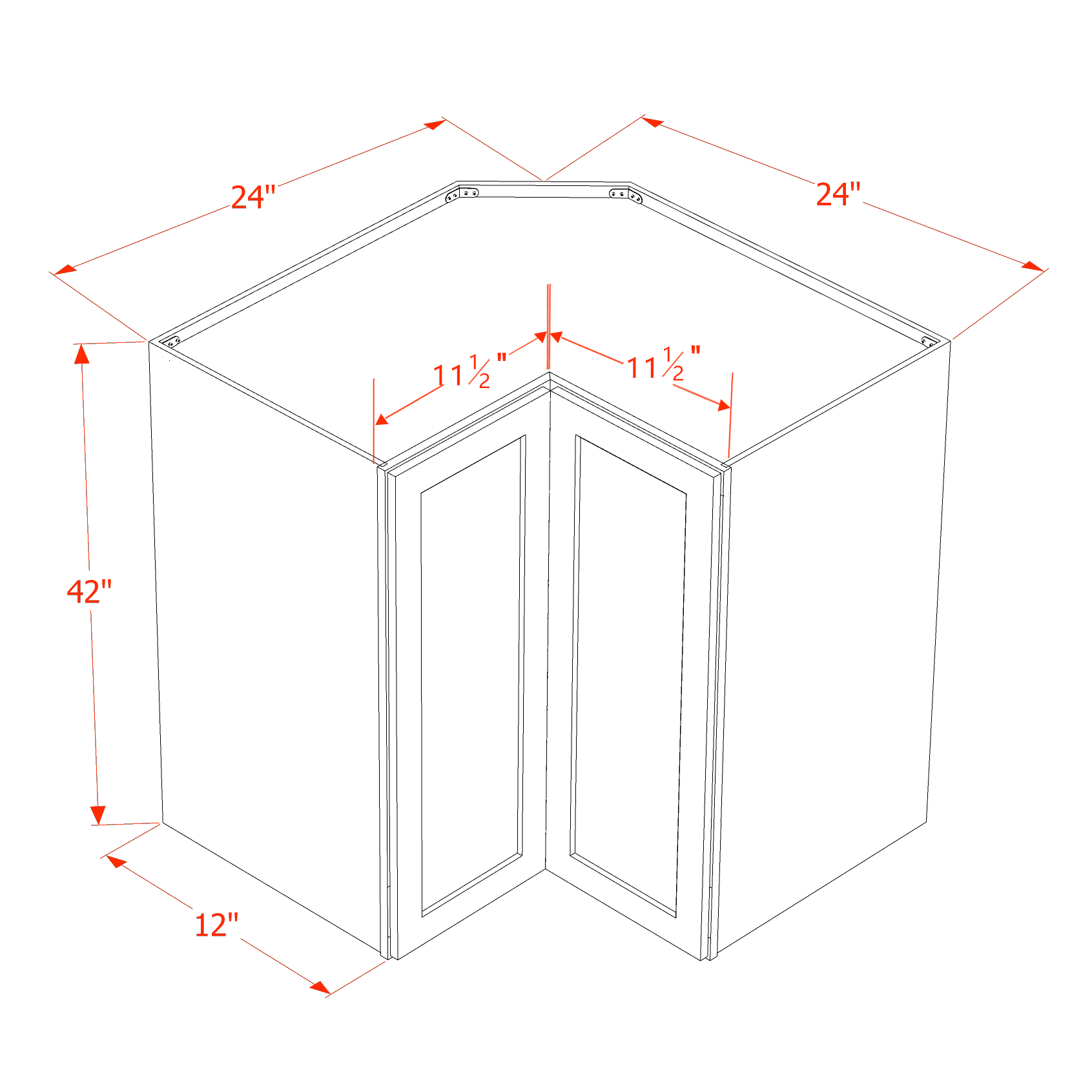 Trenton Swan White - Corner Wall - Pie-cut w/ 1 Door & 2 Shelf - 24"W x 42"H x 12"D